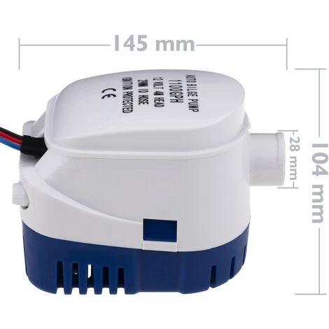 - Il fonctionne à 12VDC et 3A, et peut être immergé jusqu’à une profondeur de 4 mètres. Il a une bouche pour tuyaux de 28 mm de diamètre.