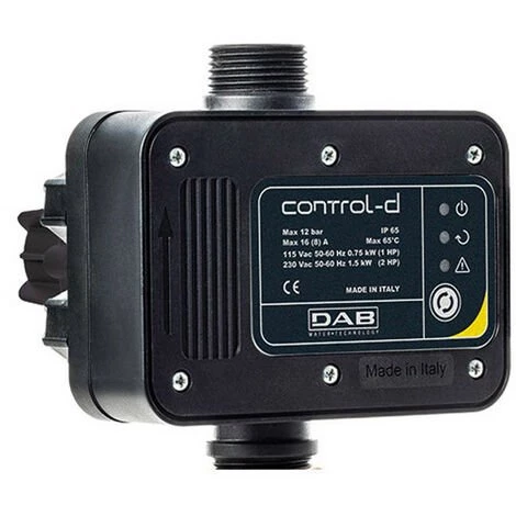 Contrôle et protection DAB CONTROL-D 1,5 BAR, sans câble, Démarrage et arrête la pompe en fonction de l’ouverture ou fermeture des utilisations. Arrête la pompe en cas de manque d’eau et la protéger de la marche à sec. Il est équipé de ré-armements automatiques en cas de verrouillage et de fonction antiblocage.