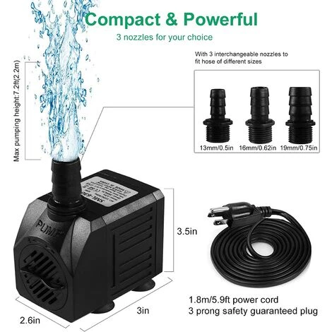 La pompe de fontaine est sans danger pour les poissons sans cuivre ni huile exposés libre. La taille compacte est facile à cacher et à déguiser.