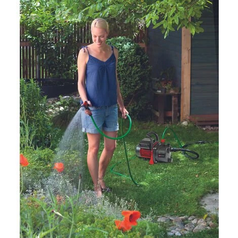 La pression de refoulement est alors de 3,6 bar et la hauteur d’aspiration maximale de 8 m, la hauteur de refoulement maximale pouvant même atteindre 36 m. Avec son interrupteur marche/arrêt, la pompe d’arrosage est instantanément opérationnelle.