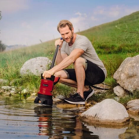 - La pompe permet aussi bien l’aspiration de l’eau claire jusqu’à 1mm de profondeur et l’évacuation d’eau chargée avec des particules jusqu’à 20 mm.
