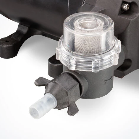 Une batterie de taille correspondante est importante lors du fonctionnement de cette pompe à membrane. Celle-ci ne doit pas descendre en dessous de 12 V / 50 Ah même avec un fonctionnement sporadique de la pompe. Il est également important de sassurer que la ligne dalimentation a un fusible et une section transversale appropriés.