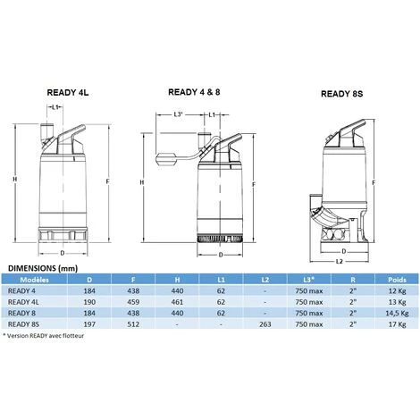 Les pompes Flygt Ready sont des pompes submersibles légères et faciles à entretenir, spécialement conçues pour vos pompages d’urgence d’eaux chargées (faiblement boueuse ou légèrement chargé en sable). Leur conception premium utilisant l’aluminum et le polyuréthane pour les parties hydrauliques, leur confère une résistance au temps et aux conditions de pompage difficiles. Elle est la solution idéale pour les interventions d’urgence d’inondation, d’assèchement ou nettoyage de cave ou garage ou encore captage d’eau dans la lutte contre les incendies.