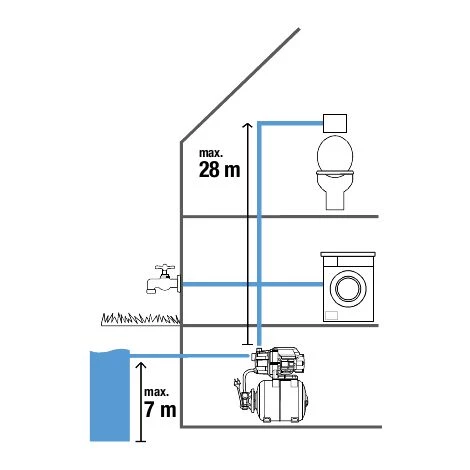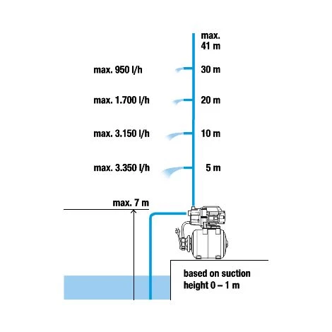 - Hauteur manomètrique / Pression max.: 41 m / 4,1 bar