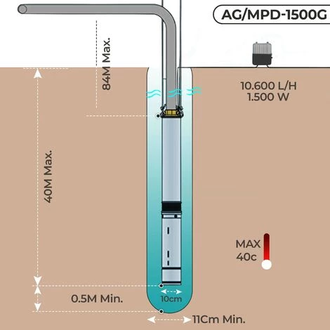 HAUTE PERFORMANCE: cette pompe est conçue pour les puits profonds car elle est capable de transporter l’eau de puits allant jusqu’à 40m de profondeur grâce à son moteur de 1500W qui permet un débit d’eau de 10.62m3/h