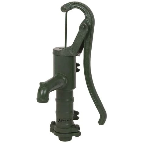 Cette pompe à bras décorative, en fonte, a un effet indéniable, qui renoue avec le charme du passé.