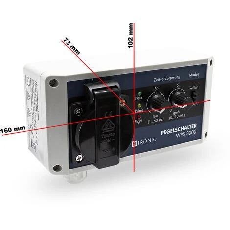 L’interrupteur de niveau d’eau de H-Tronic WPS 3000 est conçu pour la surveillance automatique du niveau des liquides conducteurs dans les réservoirs, les puits et les caves, etc.). Lorsque l’eau s’introduit ou quand un certain niveau est atteint, un relais s’enclenche et met soit en marche, soit désactive, par exemple, les pompes, les vannes ou bien les détecteurs alimentés par le réseau.