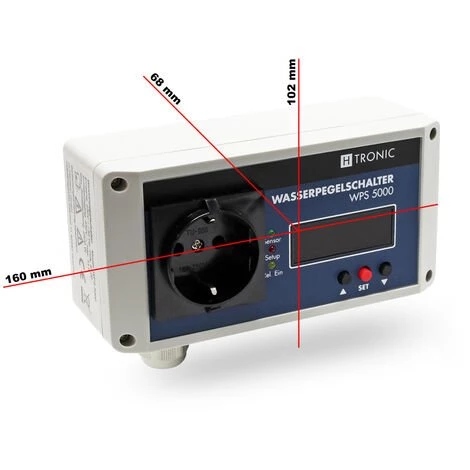 Le détecteur électronique de niveau d‘eau WPS5000 de la marque H-Tronic convient à la surveillance automatique du niveau de liquides conducteurs dans des réservoirs, des cuves et des puits, qui sont fabriqués en béton, plastique ou en métal. Cet appareil vous sera utile pour détecter, entre autres, les niveaux de liquides suivants: eau de pluie, eau du robinet, eau douce, eaux usées, eau de refroidissement et de chauffage et l’eau de refoulement. Un outil indispensable surtout suite à un bouchon de tuyaux d‘écoulement ou à une inondation elle-même due à une rupture de canalisation.