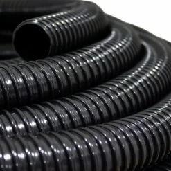Tuyau de bassin en PVC noir avec spirale en PVC rigide. Ce tuyau se raccorde idéalement aux pompes de bassin, aux stérilisateurs UV et aux filtres de bassin.