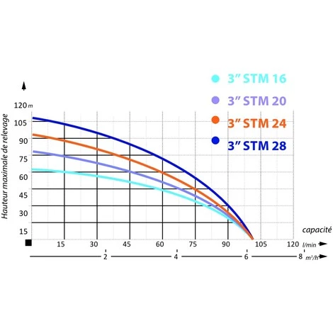 | 3″STM 20 | 77 | 100 | 1100 | 230 | 6,7 | 1.1/4″ | 7,5 / 134 | 12 |