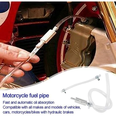 Notre ligne de carburant de moto utilise le principe du siphon, en agitant rapidement la tête en cuivre peut augmenter le diamètre de l’huile, ce qui vous permet de pomper l’huile plus rapidement. Convient à la plupart des véhicules, voitures, motos ou vélos avec freins hydrauliques.