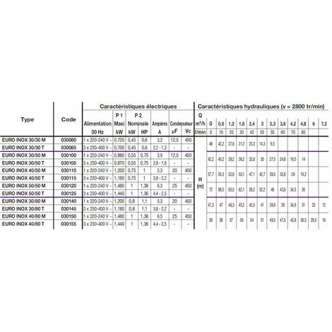 | Corps Pompe: | Acier Inoxydable AISI 304 |