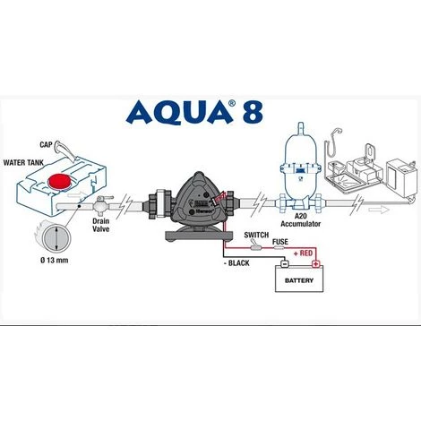 La pompe FIAMMA AQUA 8est très puissante et peut aspirer et pomper jusqu’à plus de 3m de hauteur.