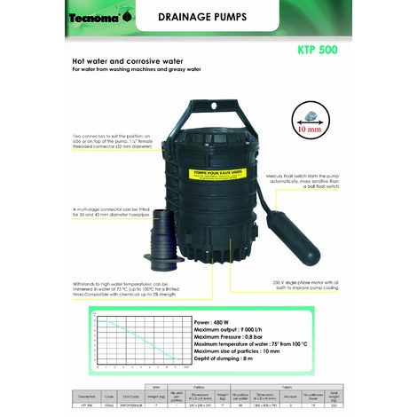 Pompe pour les eaux de machines à laver et eaux grasses ( eaux chaudes et corrosives)