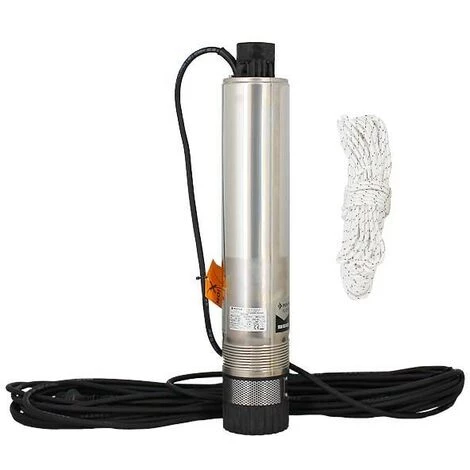 Tension (V) : Monophasé – 230 V Pompe automatique : Non Sécurité manque d’eau : Non Condensateur interne : Oui Câble électrique (en mètres) : 20 m Corde : Oui Turbine (matériau) : Noryl/Plastique Position horizontale possible : Non Niveau d’immersion maximum : 17 m