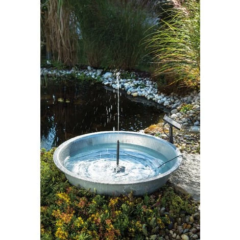 Parfois, un peu plus petit suffit : Avec le modèle dentrée de gamme Solar Fountain 1.5 / 140, esotec propose un ensemble complet prêt à brancher composé dun module solaire compact avec un piquet de sol et une pompe submersible dimensionnée de manière appropriée avec un débit allant jusquà 140 l par heure. Cet ensemble darroseurs crée un accroche-regard enchanteur dans votre bassin de jardin ou un bol deau sur la terrasse sans aucun raccordement au réseau ni frais délectricité.