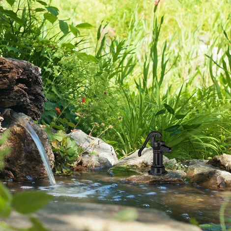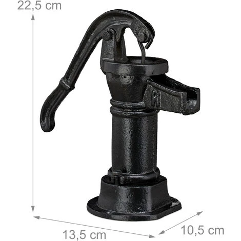 Avec la pompe décorative en format mini, vous enrichissez votre jardin etcréez un charme antique. La décoration de jardin s’inspire d’une pompe à brasclassique en noir. Faite en fonte, la pompe à eau se caractérise par son aspectrustique qui la fait paraître plus ancienne. Même si la pompe de jardin estdestinée à des fins décoratives, son bras est mobile – il suffit de desserrerla vis. Les trous percés pour un ancrage fiable au sol sont déjà préparés.
