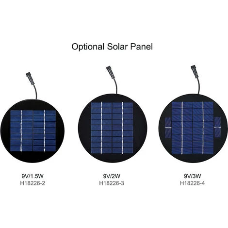 Diamètre du panneau solaire : 120 mm (1,2 W) ; 150mm(1.8W);176mm(2.5W);176mm(3.5W)