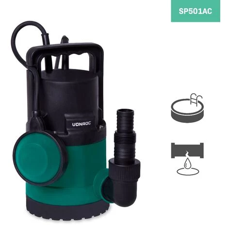Besoin d’une pompe submersible pour eaux usées et claires ? Consultez la pompe d’évacuation 400W – 8000L/h pour eaux usées et claires SP502AC de VONROC.