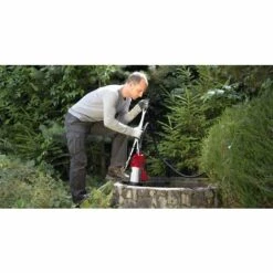 - Nous conseillons d’attacher une corde solide à la poignée afin de laisser couler la pompe doucement dans l’eau.