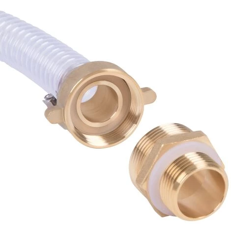 - Set de tuyau d’aspiration de haute qualité avec clapet de pied en laiton à ressort, raccord rapide étanche en laiton et colliers de serrage en acier inoxydable.