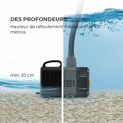 La pompe à eau Waldbeck Lagoon 5200 a une hauteur de refoulement maximale de 4,8 m, ce qui la rend idéale pour les petites fontaines. De plus, un bouton à l’avant de l’appareil permet de régler l’intensité du débit pour que vous puissiez régler à volonté la hauteur de vos fontaines. La pompe intéressera aussi les jardiniers amateurs : avec son câble de 2,5 m de long, vous pouvez facilement la plonger dans un récupérateur d’eau de pluie pour faciliter l’arrosage du jardin en tant que pompe à eau de récupération.