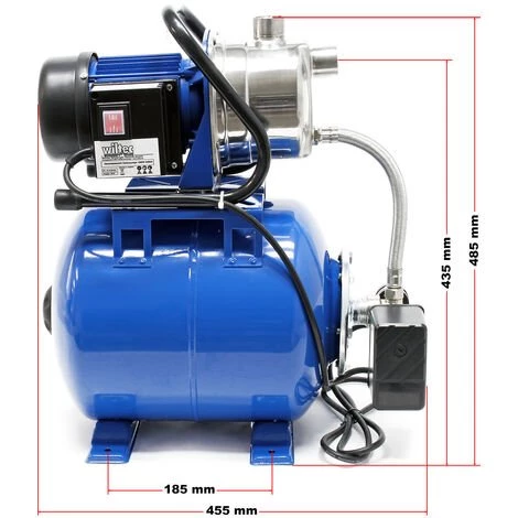 WILTEC Station Eau Domestique Pressostat & Réservoir à Vessie 1200 W 3400l/h 19l Puissance De Pompe Jardin