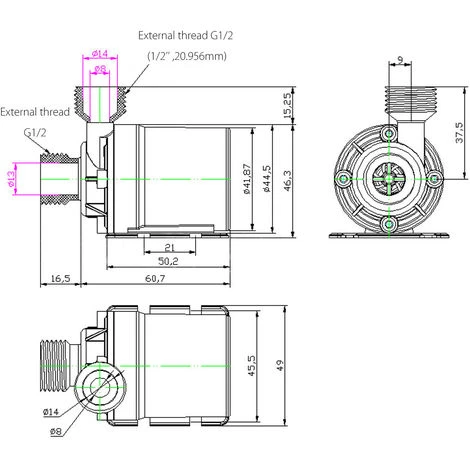 (Remarque: la pompe sans balai DC est une pompe centrifuge, le débit d’eau de la pompe avec l’augmentation de la tête diminue. pas de plongée sans fonction auto-amorçante, pas d’eau libre.)